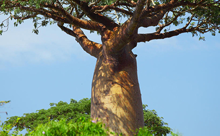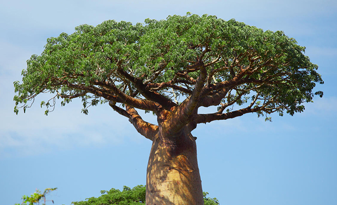猴面包树的茎和树干能够储存大量水分,使其能够在干旱季节为自身和周围植物提供水源。